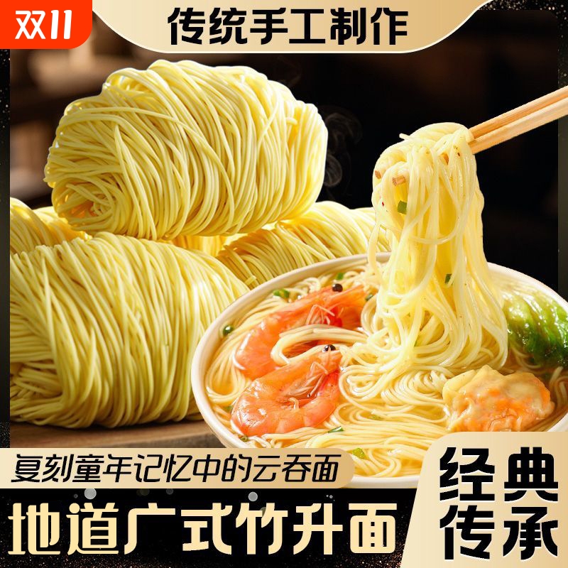 芬姐精选全蛋竹升面手工面条炒面正宗独立细云吞面鸡蛋面整箱面食