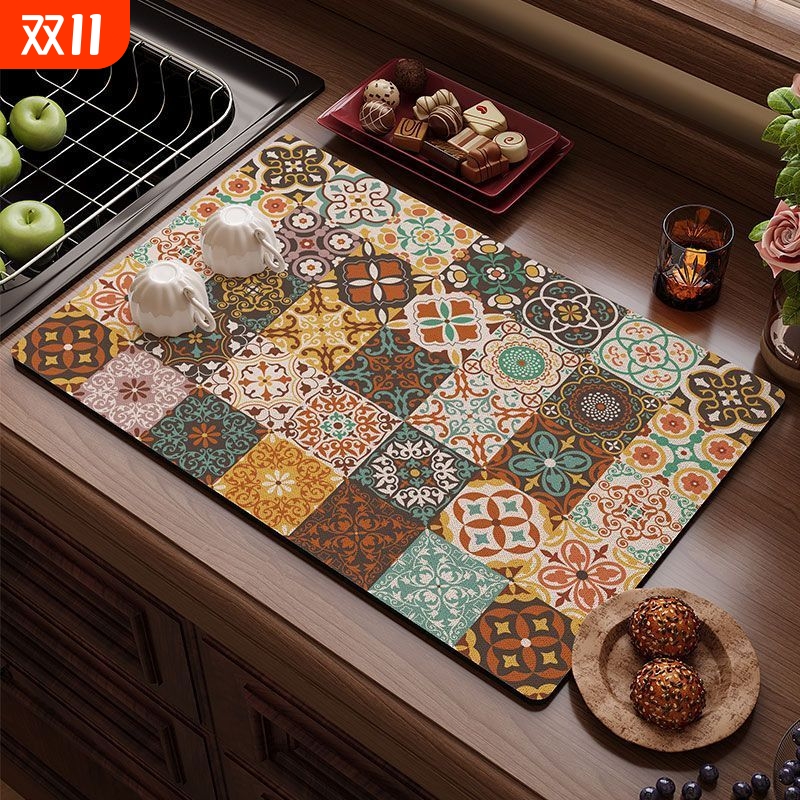 欧美风高端垫子茶几厨房沥水垫复古台面硅藻泥吸水碗碟餐具干燥垫