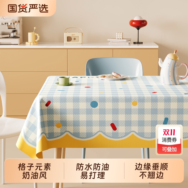 ins风茶几桌布防水防油款免洗餐桌布纯色布棉麻长方形床头柜桌子