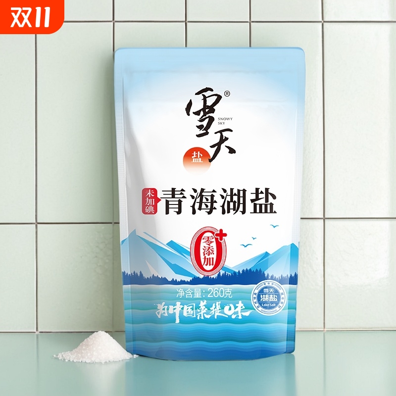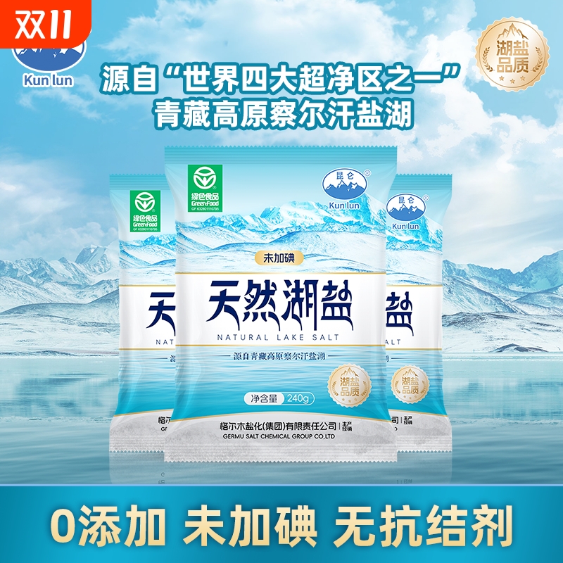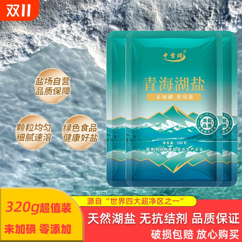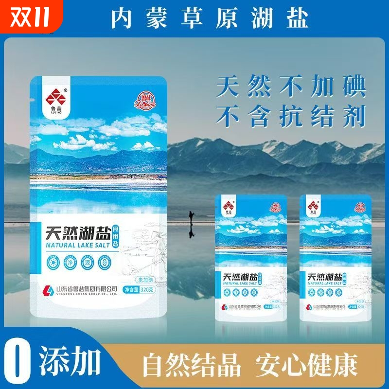 鲁晶天然湖盐320g*2袋无碘盐家用无抗结剂食盐 茶卡青海湖盐食