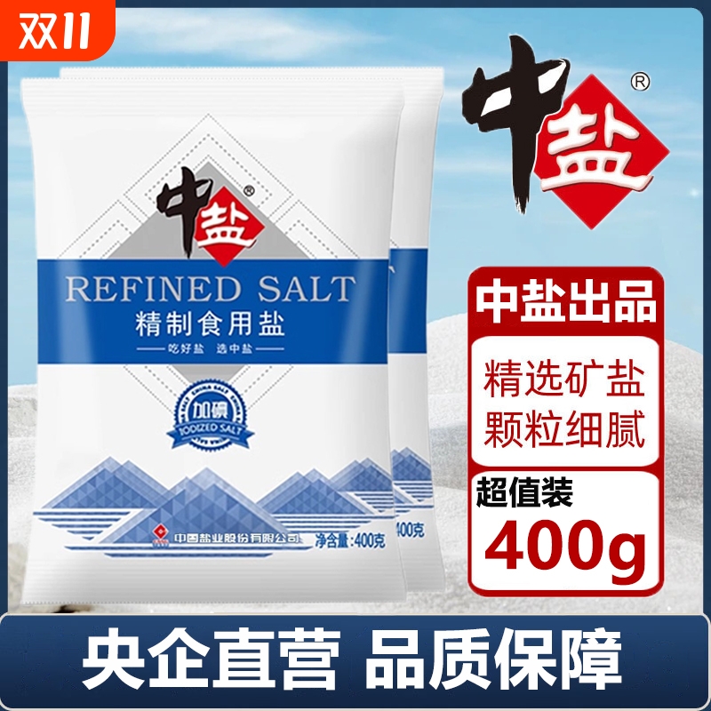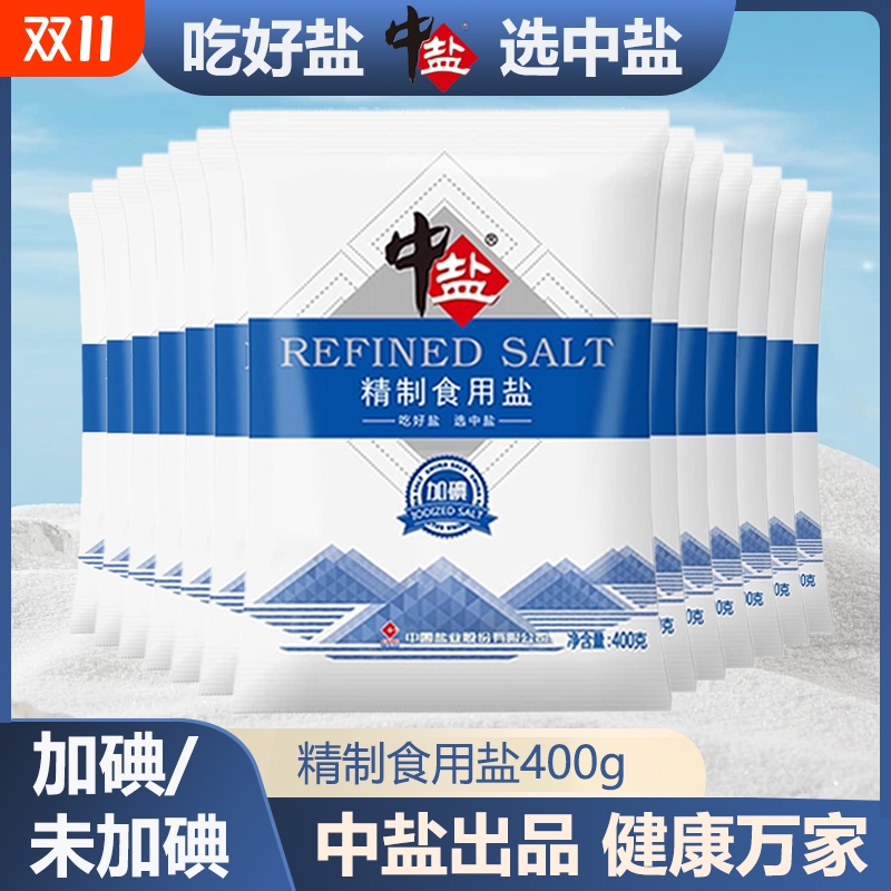 中盐未加碘/加碘精制食用盐家用炒菜调味腌制食盐细盐井矿盐低钠