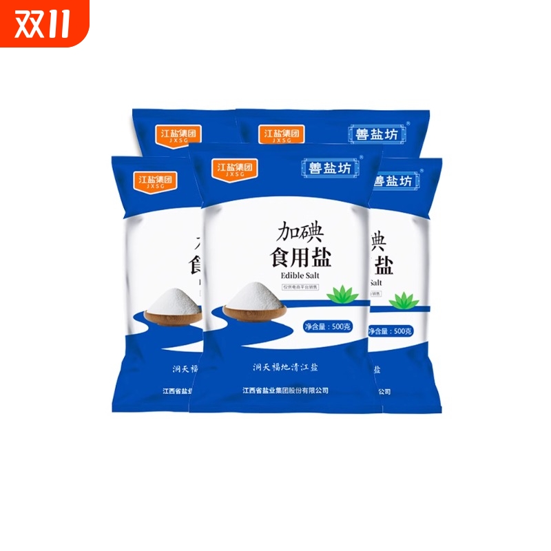 江盐集团善盐坊加碘食盐500g*10袋家用批发井矿盐厨房调味细盐