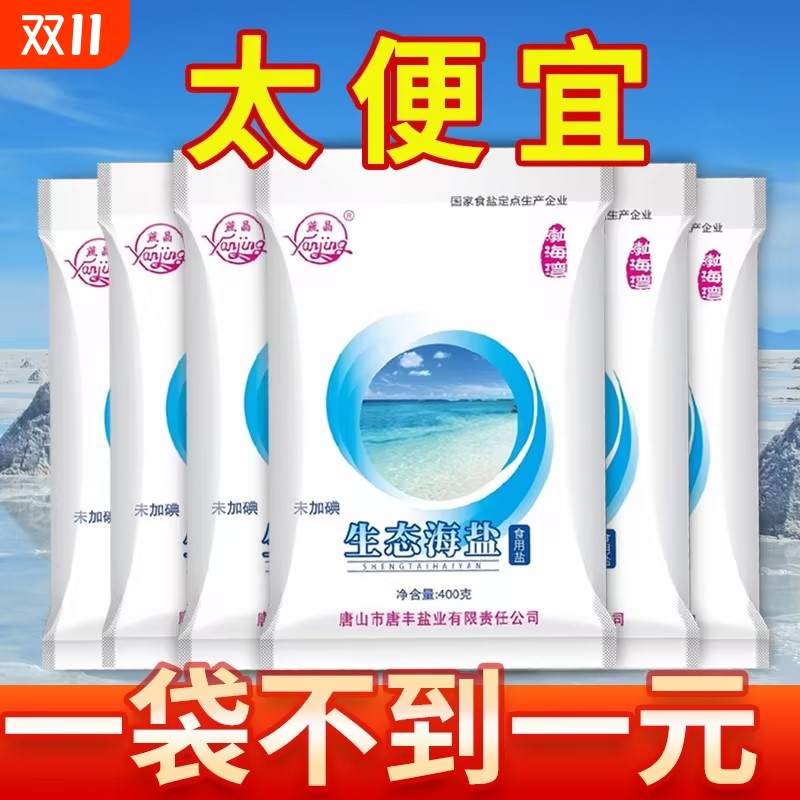 未加碘海盐0添加食用盐细盐无碘抗结剂食盐家用袋装国家海水生态