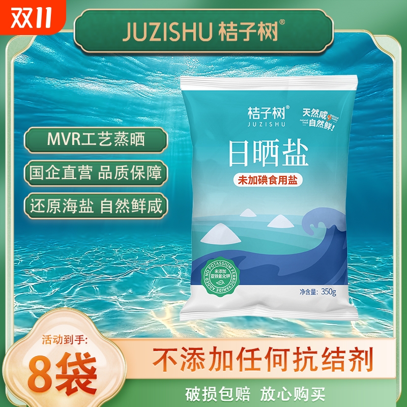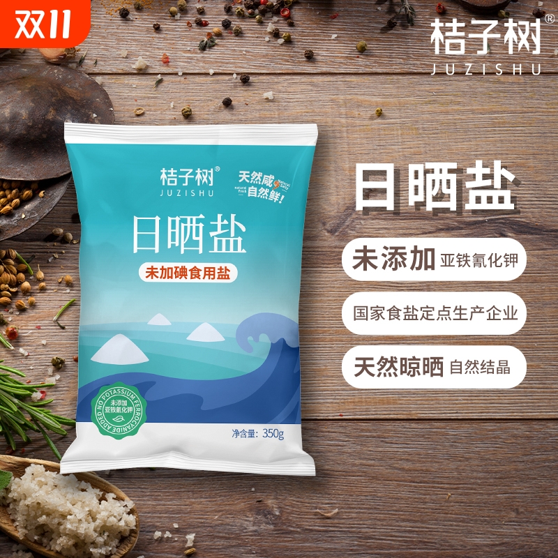 桔子树未加碘日晒盐350g海盐无碘盐厨房家用食盐炒菜凉拌菜食盐