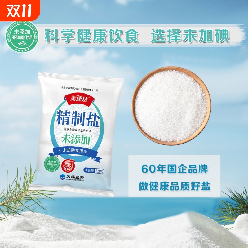 美康达精制盐未加碘盐煲汤炒菜无碘220g食盐家庭用盐零添加海盐