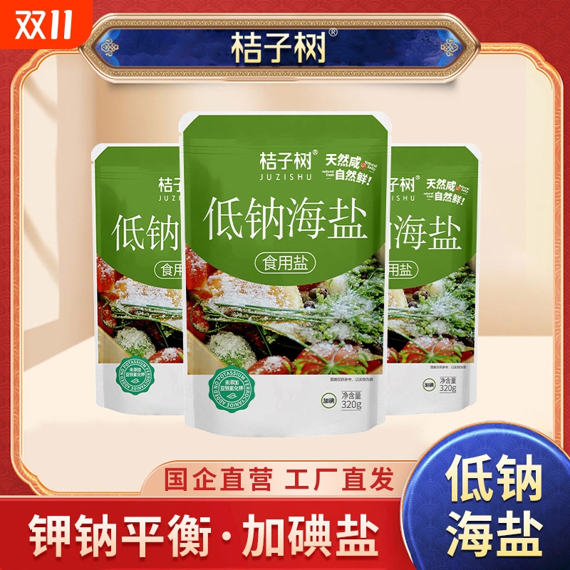 桔子树低钠海盐320g加碘食盐天然无添加家用食盐