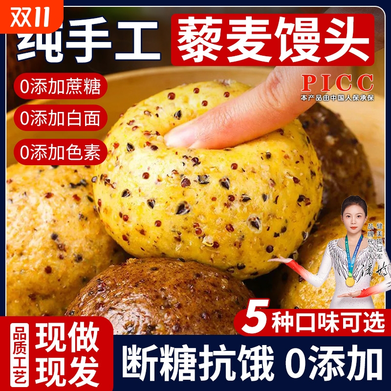 三色藜麦馒头控糖荞麦粗粮主食无糖精全麦杂粮馒头纯手工健康食品