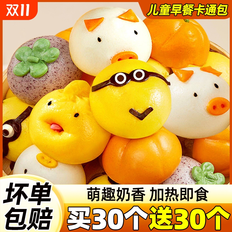 卡通包子馒头奶黄豆沙早餐半成品猪猪包速冻面点冷冻营养健康奶香