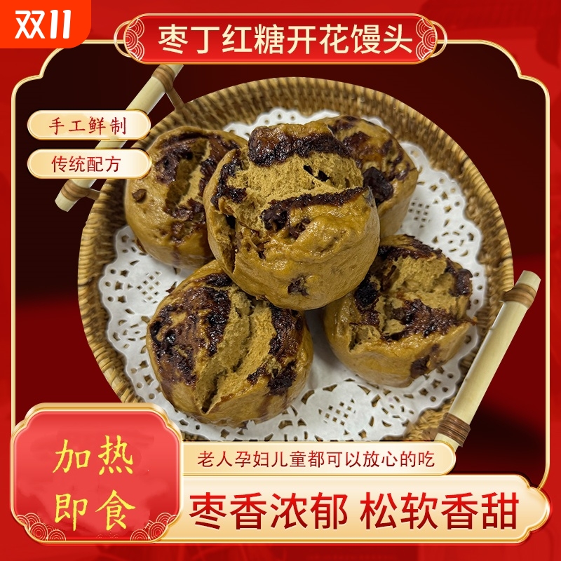 纯手工枣丁手撕红糖馒头开花馒头山东大馒头大枣红枣馒头加热即食