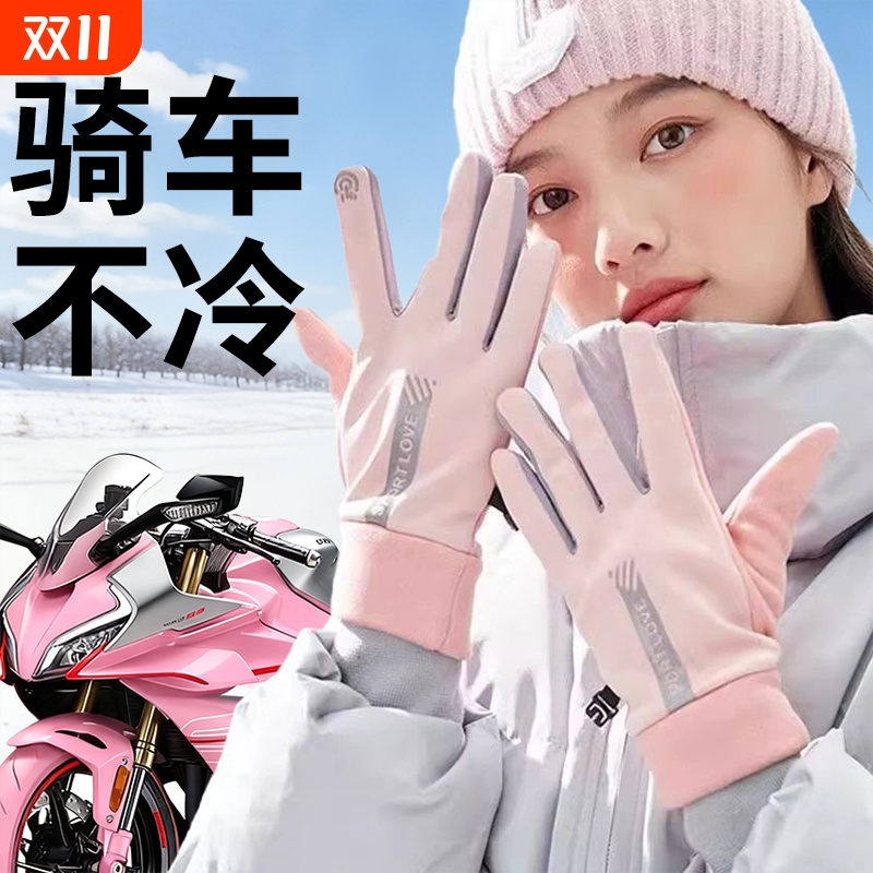 手套女秋冬季2025触屏加绒加厚滑雪电动车保暖冬天骑行男防水骑车