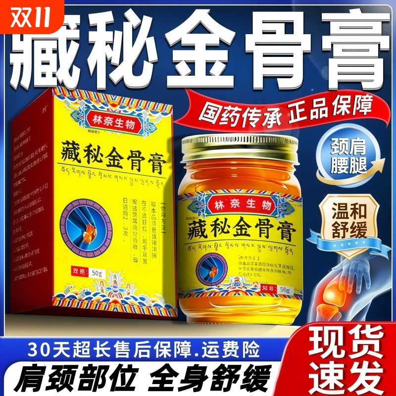 藏秘金骨膏护肩颈护腰腿膝盖发热外用涂抹按摩藏密金骨膏