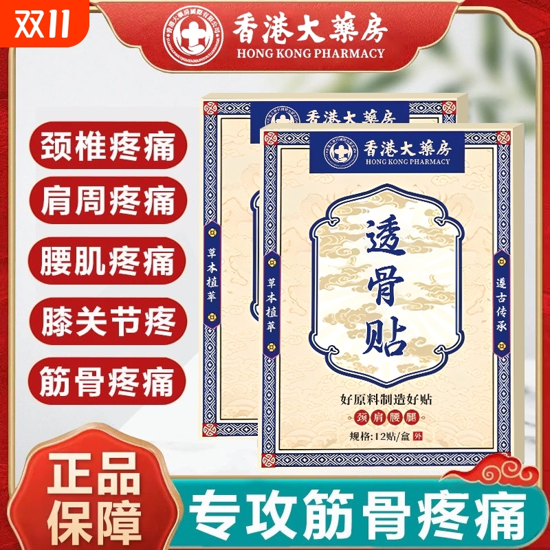 香港大药房透骨贴颈椎膝盖发热膏药贴三七贴关节疼痛膏贴艾草贴