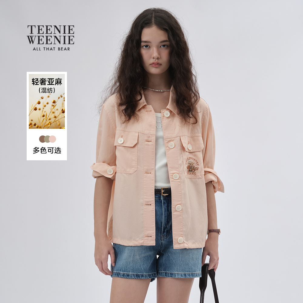 【含亚麻】TeenieWeenie小熊奥莱25秋季新款轻透粉色短