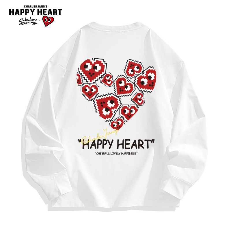 查尔斯桃心 春秋新款美式套头休闲长袖t恤男女同款内搭情侣打底衫
