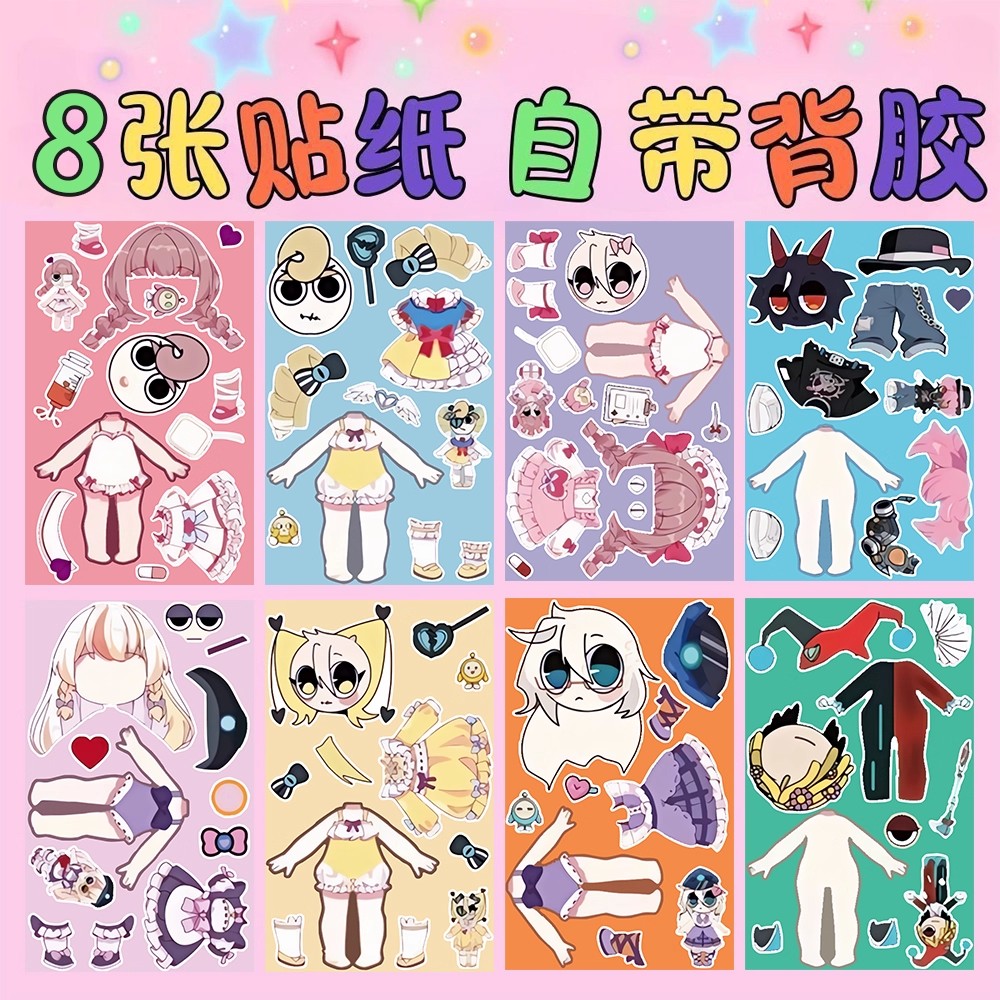 暑期新款节奏盒子贴纸的人物换装免裁剪diy创意手工益智儿童玩具