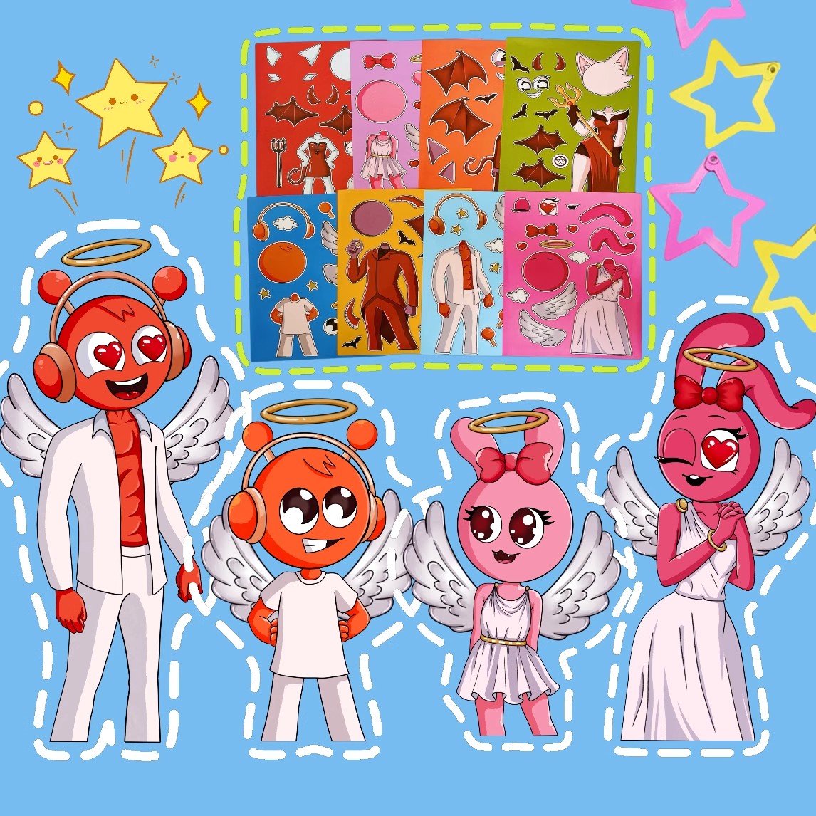 新款节奏盒子天使与恶魔腐化婴儿警长拉布拉多换装贴纸DIY益智玩