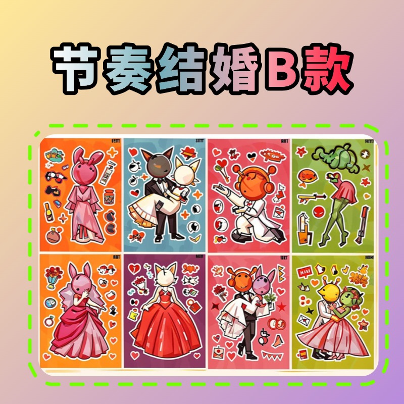 节奏盒子结婚换装贴纸卡通图案可爱益智diy粘贴画儿童玩具安静书