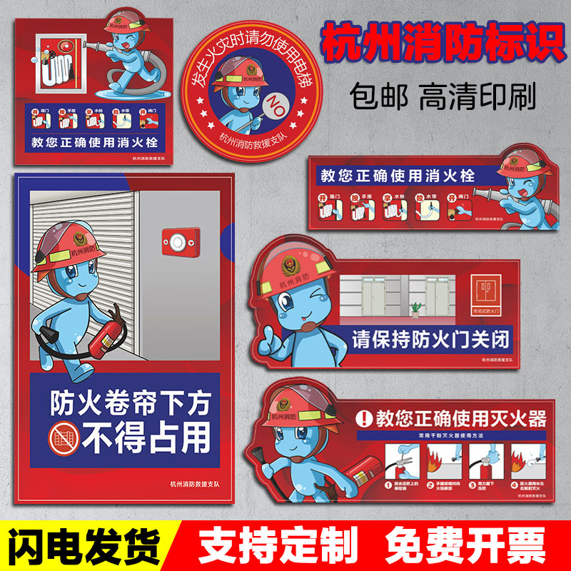杭州消火栓灭火器使用方法说明贴纸消防安全通用款请勿锁闭紧急按钮提