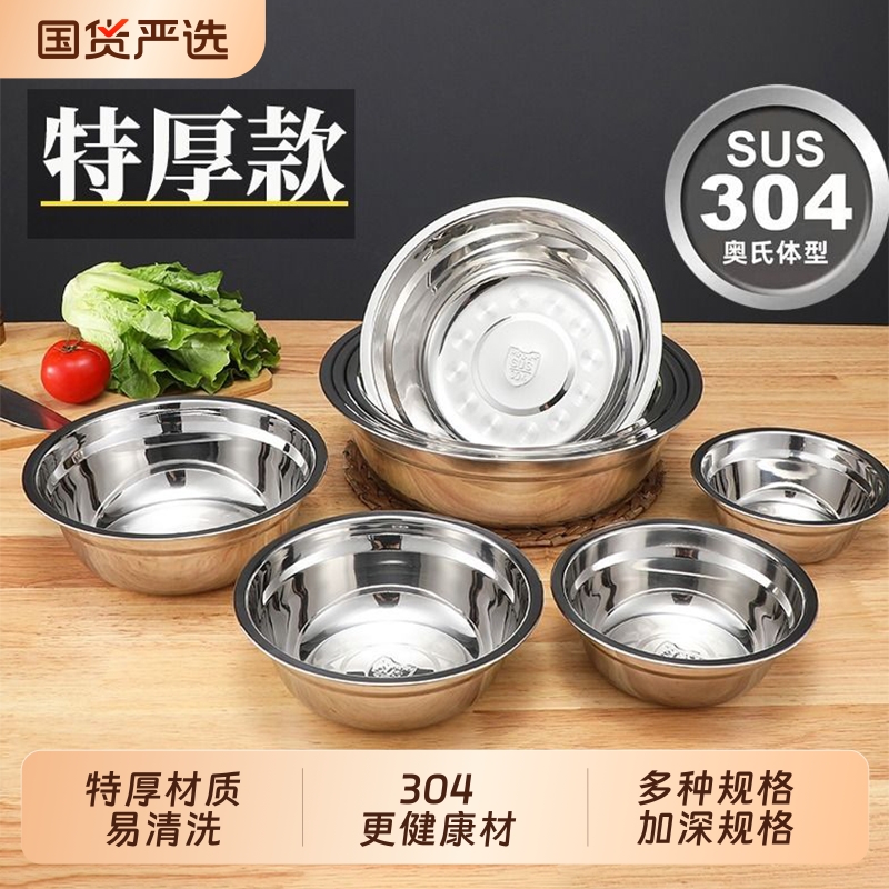 304不锈钢盆食品级和面盆洗菜盆加厚家用厨房沥水篮打蛋汤盆猪油