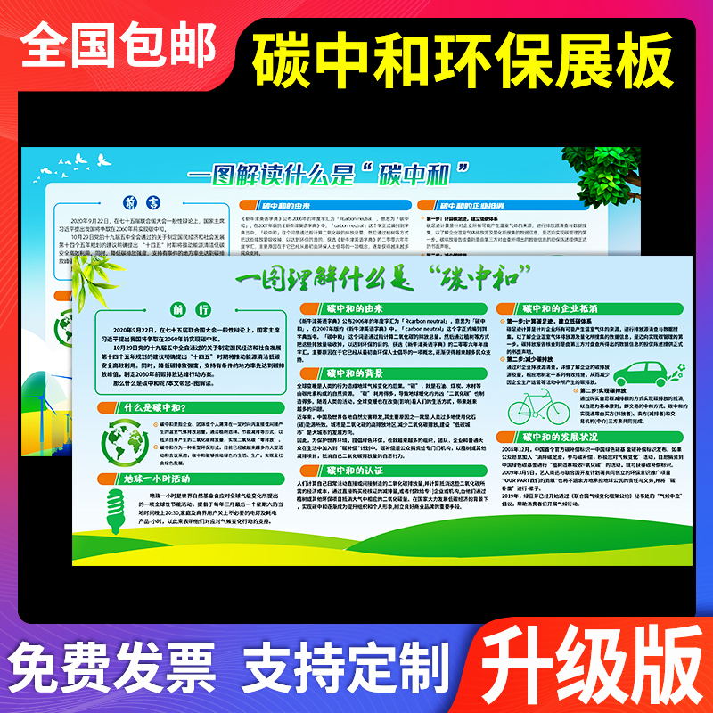 碳中和主题宣传海报环保展板定制碳达峰环保知识贴纸绿色低碳节能减排