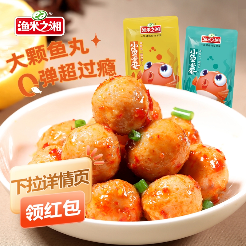 渔米之湘鱼蛋蛋鱼丸零食80包即食休闲湖南特产香辣味麻辣小吃便宜