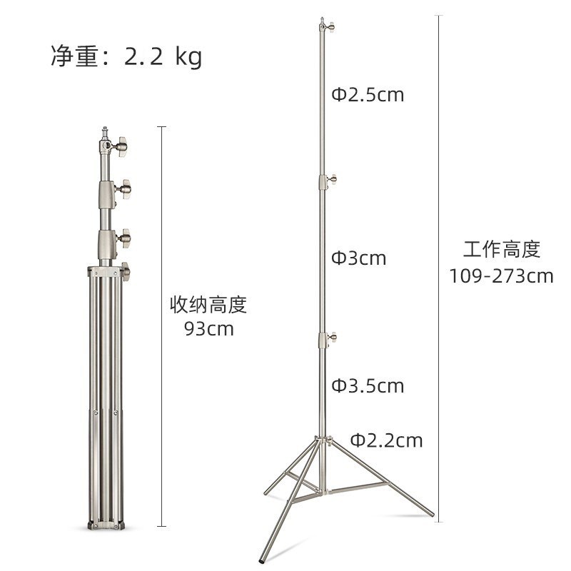 摄影灯支架2.8米不o锈钢灯架 影视外拍加粗三脚架折叠承重三角