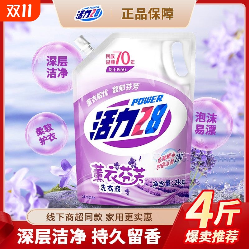 活力28亮白洗衣液薰衣草香氛持久留香低泡易漂家用补充装袋装衣物