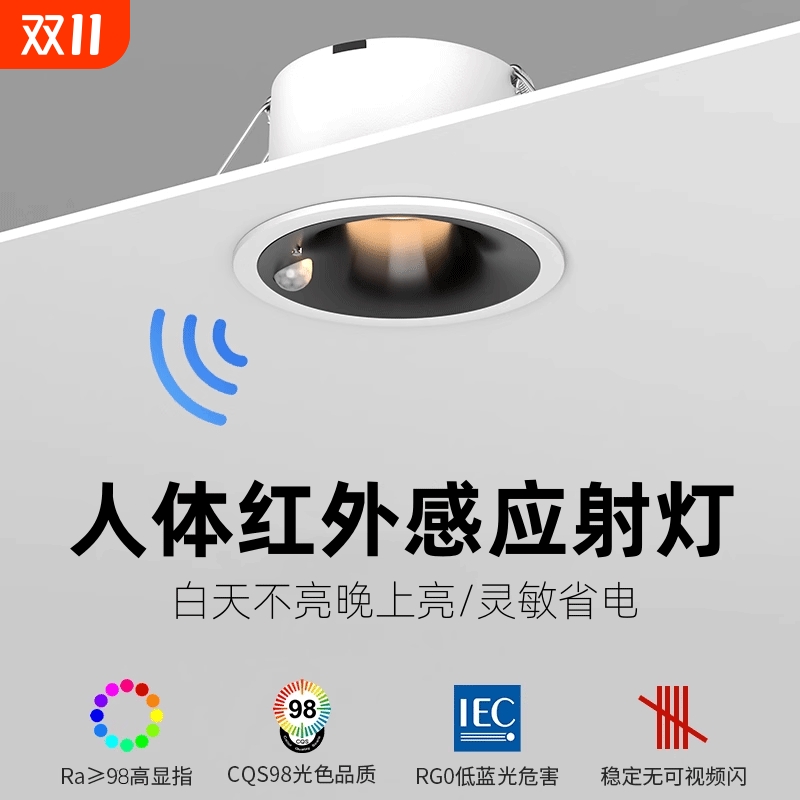 led智能声控人体感应筒灯嵌入式天花灯家用吊顶玄关过道走廊射灯