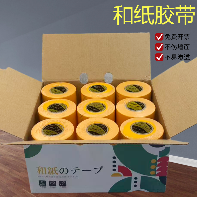 黄色和纸美纹纸胶带高粘性耐高温装修喷漆遮蔽美缝无残胶分色纸