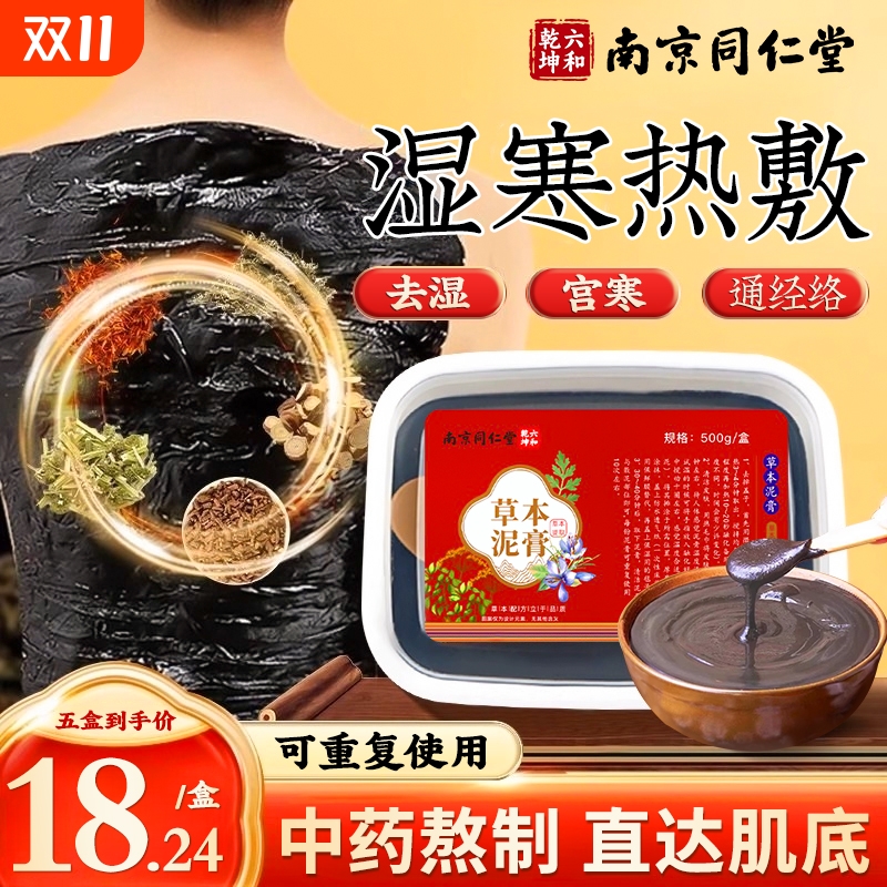 同仁堂草本中药泥灸膏热敷艾草正品去湿气艾灸祛湿排寒体内红花