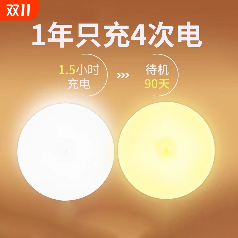 人体感应灯家用走廊过道楼道智能声控卧室无线led充电磁吸小夜灯