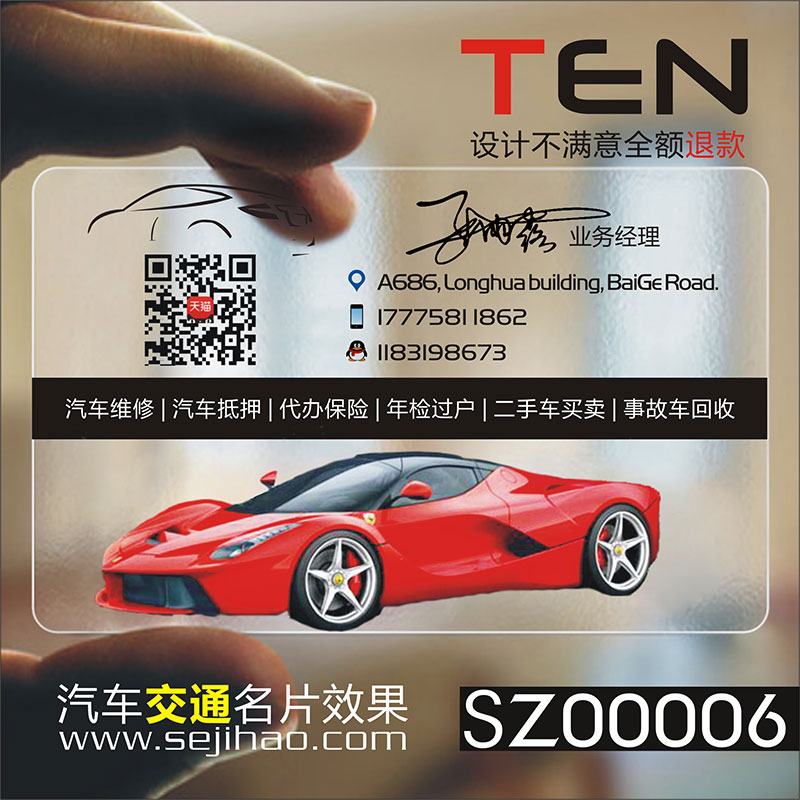 汽车维修4S店驾校贺驶次卡配件修理厂名片双面设计制作SJ0000