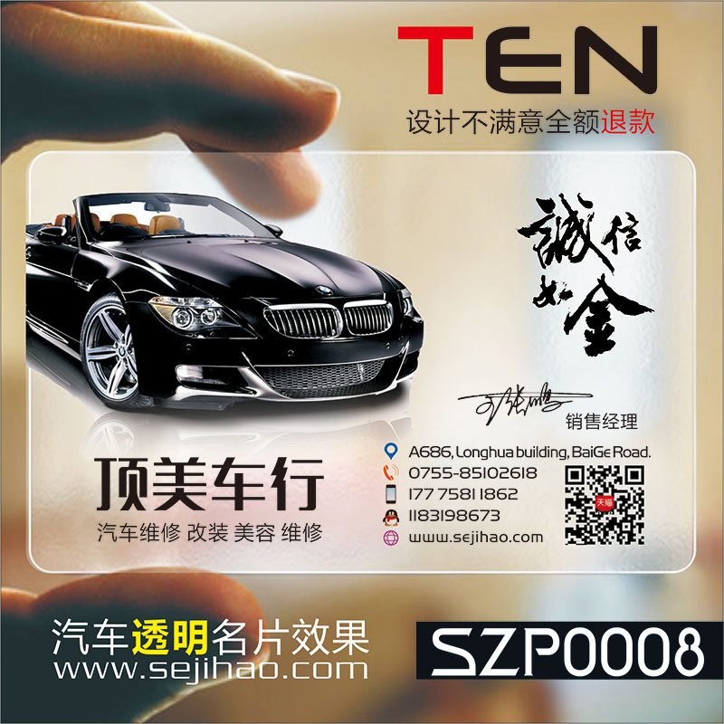 汽车维修出租驾校教练代驾4S店洗车美容次卡装潢二手车行PVC透明