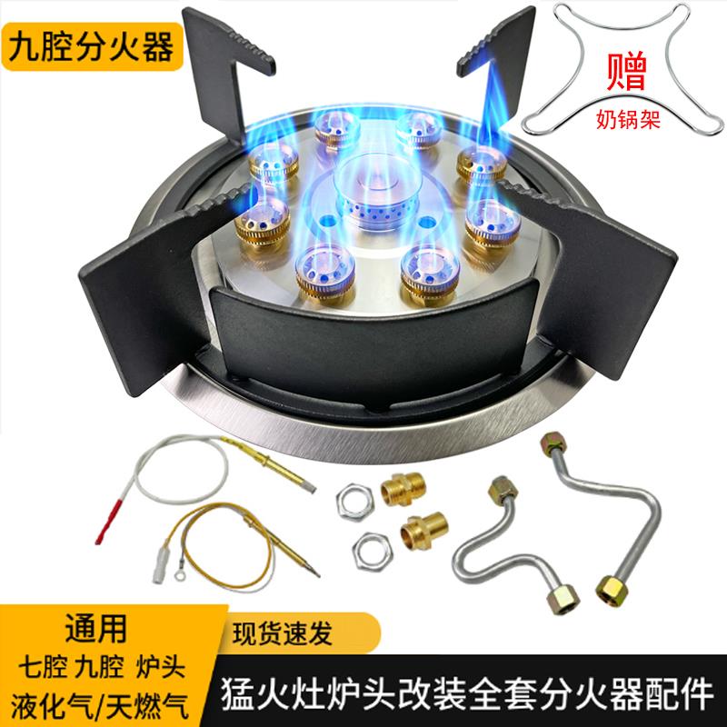 猛火灶九腔分火器液化气瓦斯炉具配件大全家用改装炉头火盖通用