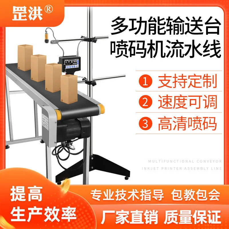 全自动可调控输送台流水线喷码机打生产日期饮料瓶侧面激光打码机