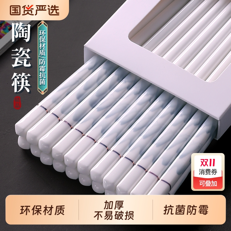 呈舒抗菌防霉耐摔不易碎陶瓷筷