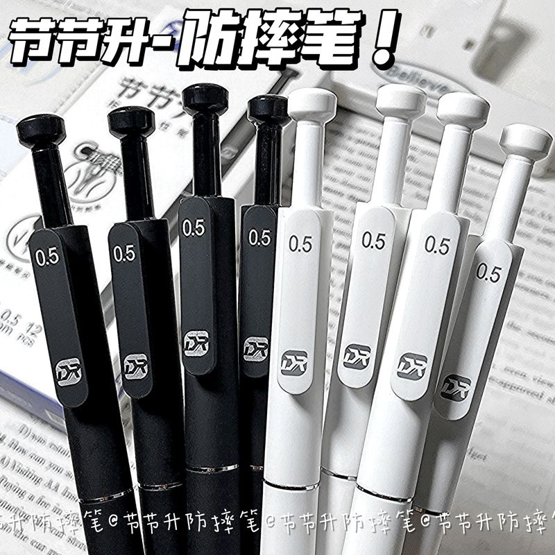 节节升按动中性笔C形锥笔头0.5mm黑进口颜料型墨水笔防摔笔头伸