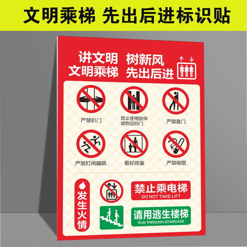 文明乘梯先出后进提示牌PP贴纸