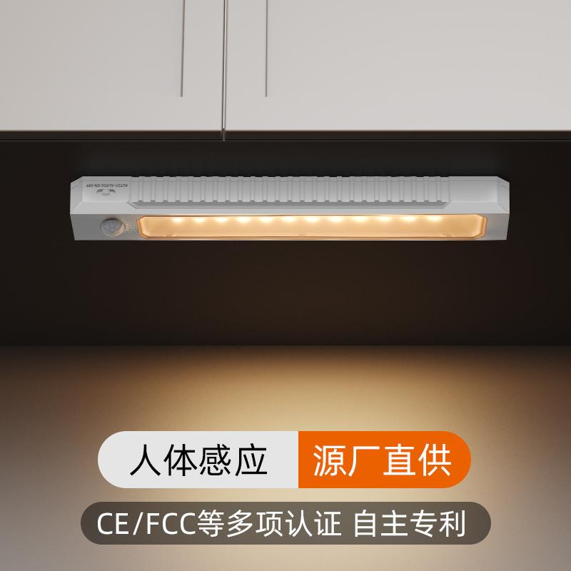 智能人体感应免布线小夜灯充电磁吸led电量显示长条双光源橱柜灯