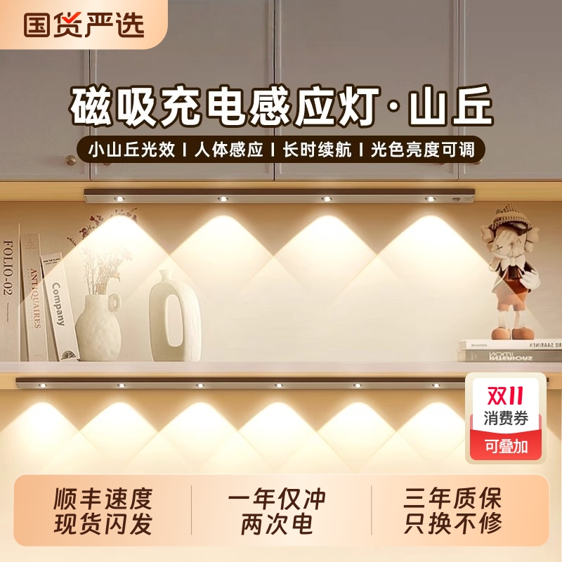 小山丘人体感应灯免布线充电餐边柜酒柜灯带自粘感应无线led灯条