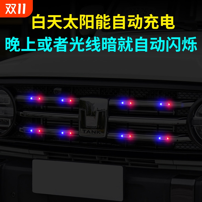 汽车太阳能led警示感应爆闪灯免接线改装通用电动摩托防追尾车灯