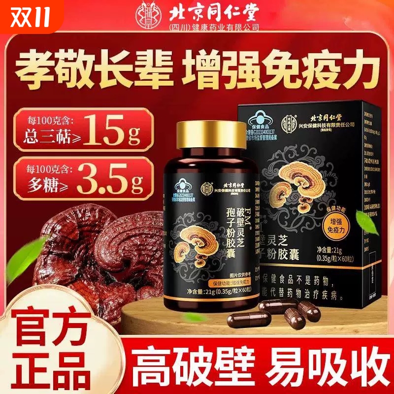 北京同仁堂灵芝孢子粉胶囊正品官方旗舰店增强免疫力高破壁高三萜