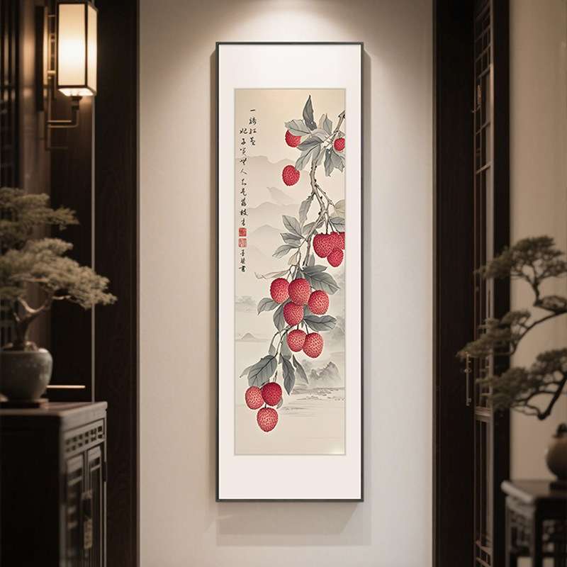 吉祥荔枝正对门入户画玄关装饰画宋代美学挂画中式竖版寓意好国画
