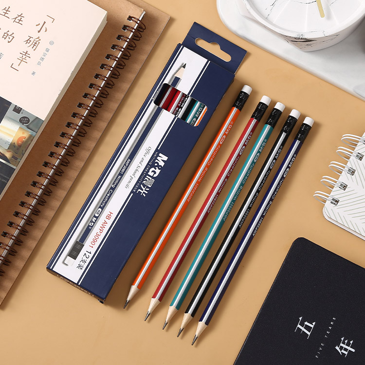 晨光三角杆HB木杆铅笔带橡皮彩色抽条笔杆小学生写字铅笔儿童铅笔