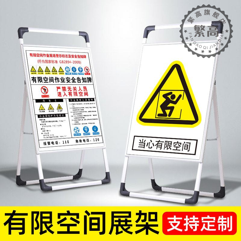 有限空间安全告知牌标识牌展示架安全作业警告施工警示牌五条规定提示