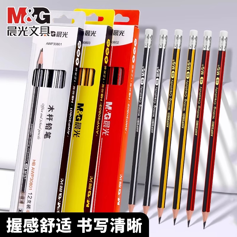 晨光木杆铅笔HB六角杆学生铅笔经典款带橡皮头绘画铅笔自带橡皮