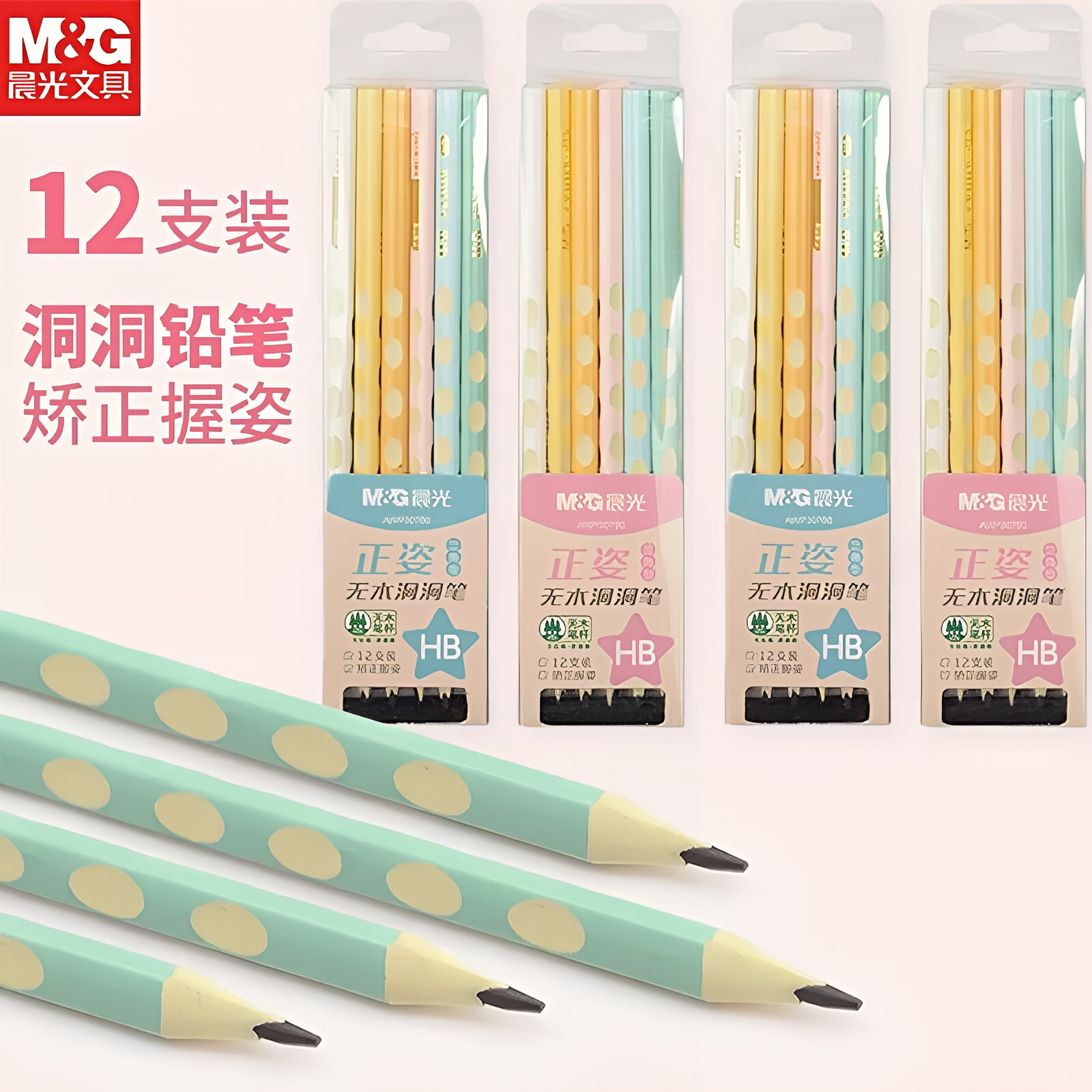 晨光HB洞洞铅笔矫正握姿小学生无木三角杆儿童铅笔练字握姿铅笔