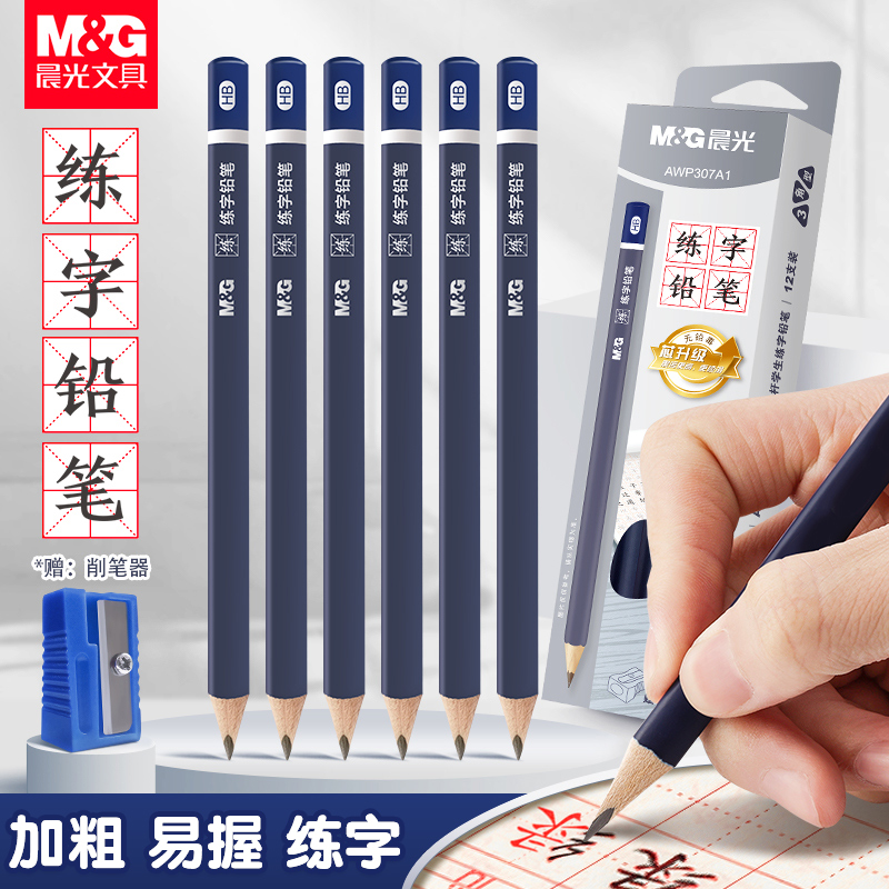 晨光学生练字铅笔三角杆加粗笔杆HB铅笔2B儿童铅笔8.3mm中粗
