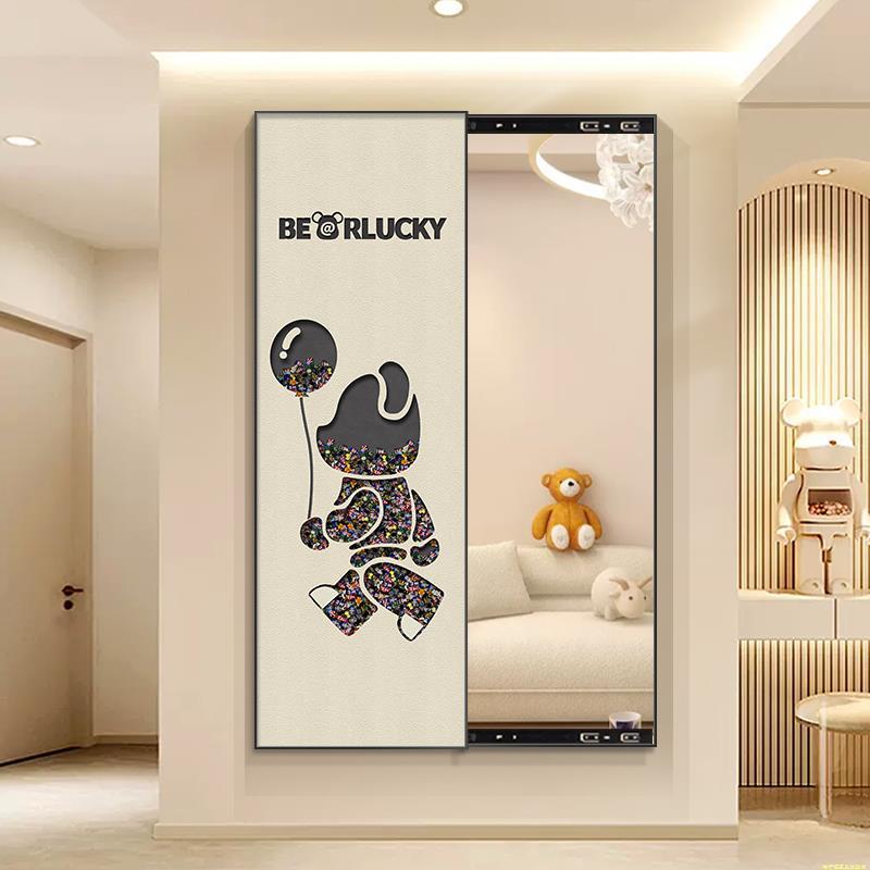 积木熊全身镜装饰画入户走廊可推拉试衣镜挂画X客厅卧室墙壁镜子