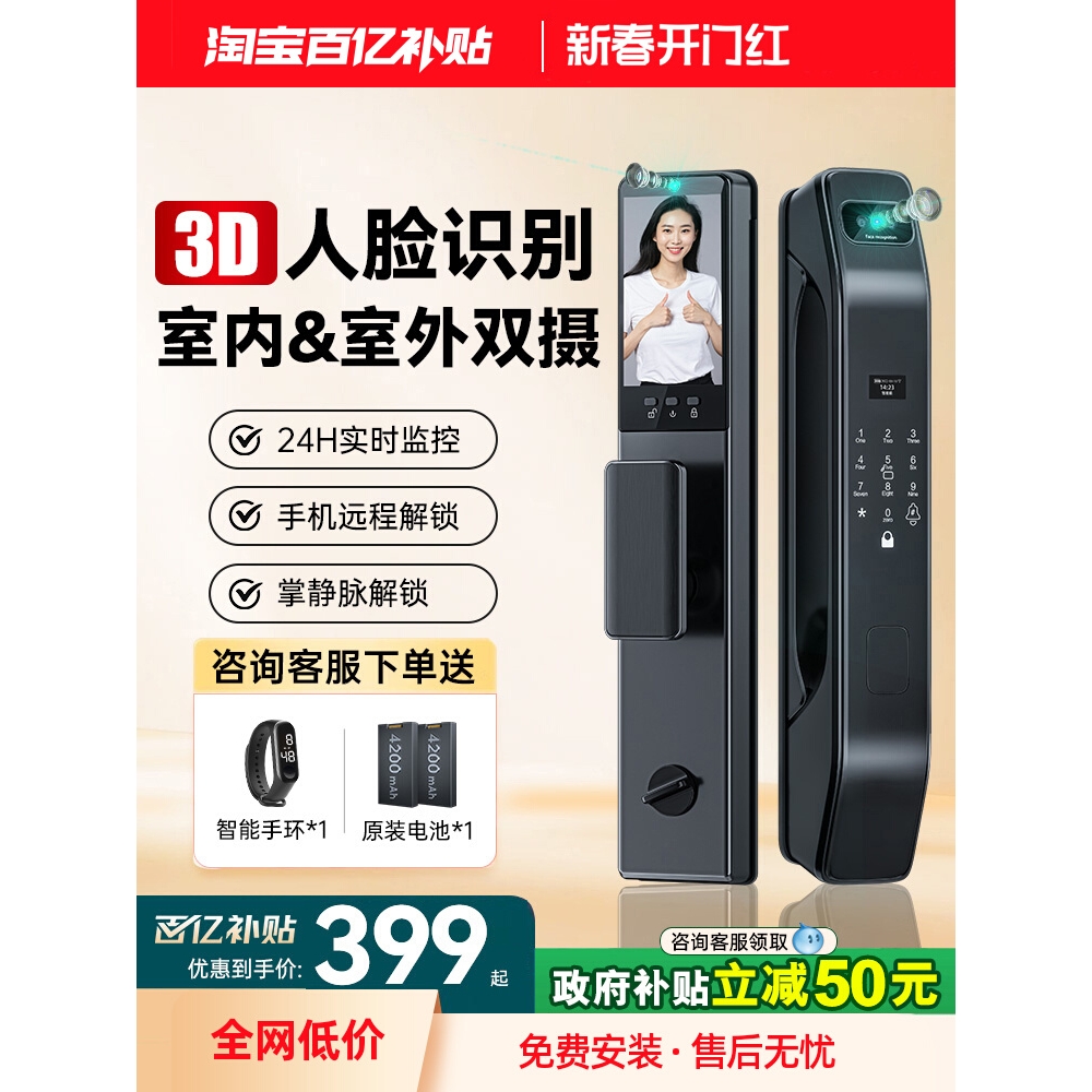 凯迪仕人脸识别指纹锁可视电子密码锁家用防盗门锁全自动入户门智